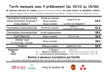 Pour afficher les tarifs en pdf, cliquez sur     Tarifs annuel