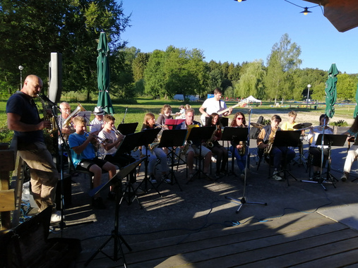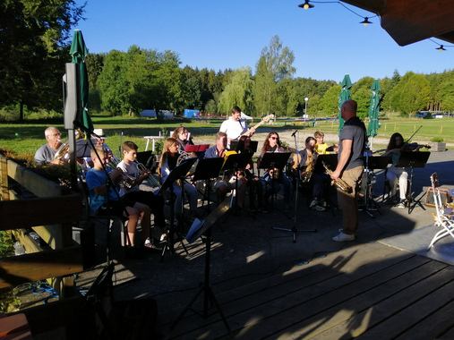 Petite sortie au plan d'eau de Courtavon avec les jeunes (et moins jeunes) de notre Orchestre. Tartes Flambées au menu après le petit concert